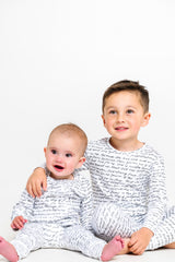 This Kids Long Sleeve Pajama Set includes a top and bottom made from our high-quality, 100% Premium Cotton knit fabric. It features our exclusive "Love One Another" print, with the full text of 1 John 4:7–19 written in elegant script. The top features a crew neck and the pants have a comfortable waistband. The set includes the unique Scripture label detail on the cuff and is available in sizes 2–14.