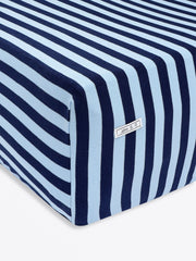 This fitted sheet is made from our high-quality 100% Premium Cotton fabric. It features our exclusive blue stripe design, rooted in the message of John 15:13. The sheet is designed for a snug fit with fully elastic edges.