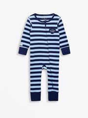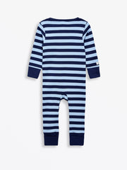 This Baby Footless Onesie is made from high-quality, 100% Premium Cotton knit fabric designed for maximum softness and breathability. The design features a full-length two-way zipper for easy access and a protective zipper garage at the neck to prevent irritation. This piece showcases our exclusive blue stripe pattern and a custom heart-shaped pocket on the chest. Available in sizes 0–24 months.
