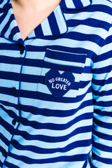 No Greater Love Blue Womens PJ Notch Collar Set Cotton