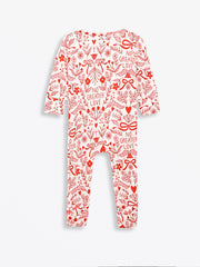 This Baby Footless Onesie is made from our high-quality Bamboo fabric, providing ultimate softness and a comfortable stretch. The design features a full-length two-way zipper for easy access and a protective zipper garage at the neck to prevent irritation. This piece showcases our exclusive "No Greater Love" pink ribbon and floral print, rooted in the message of John 15:13. Available in sizes 0–24 months.