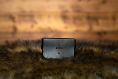 This rosary pouch is a buttonless, noiseless, envelope style premium OréMoose Rosary Pouch. Made to last a lifetime, it is elegant and durable. It is 2 1/2” x 3 1/2” in size.