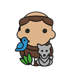 All your shoes and bracelets will bless the Lord with our Saint Francis of Assisi Saintlet. These modified Tiny Saints feature a fastener on the back that snaps into your favorite pair of clog-style shoes or our Saintlet Bracelets.
