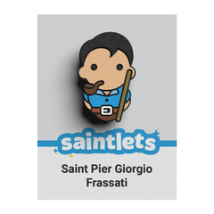 Take to the heights with Saint Pier Giorgio Frassati by your side every step of the way with Saintlets. These modified Tiny Saints feature a fastener on the back that snaps into your favorite pair of clog-style shoes or our Saintlet Bracelets.