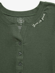 Ever wondered what the coziest nightgown in the world feels like? You gotta try our Solid Olive ribbed nightgown!