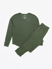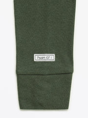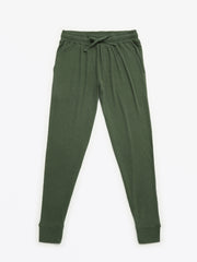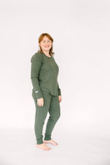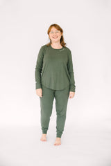 Solid Olive Womens PJ Jogger Set Ribbed Cotton-Bamboo Blend