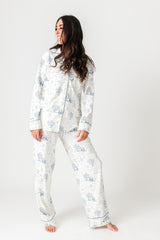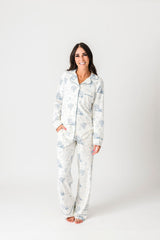 This Women's Notch Collar Pajama Set includes a long-sleeve, button-up top and relaxed-fit pants, both made from our high-quality, 100% Premium Cotton fabric. The "Empty Tomb" print features hand-drawn elements inspired by the biblical account in Matthew 28:6. The top features a notched collar and the set includes the unique Scripture label detail on the sleeve cuff.