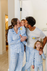 This Women's Notch Collar Pajama Set includes a long-sleeve, button-up top and relaxed-fit pants, both made from our high-quality Buttery Soft Bamboo. Our 'Risen Son' print is such a sweet way to talk about Easter morning! It pairs a classic blue gingham with a bright yellow sun to help you tell your kids the best news ever—that Jesus, the Son of God, is risen indeed.