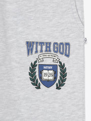 Grounded in Matthew 19:26—“With God all things are possible.” These joggers bring collegiate styling and durable fleece together to cheer your child on through practice, homework, and prayer time.